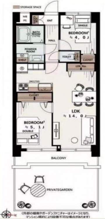 専用庭有:19.76㎡